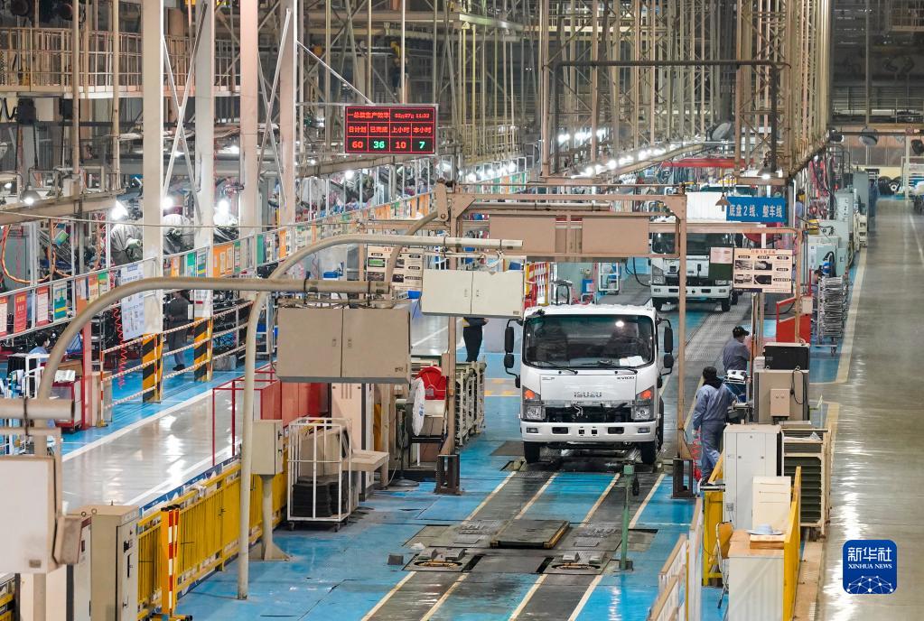 这是庆铃汽车(集团)有限公司繁忙的商用车整车生产线(2023年2月7日摄)。新华社记者 刘潺 摄