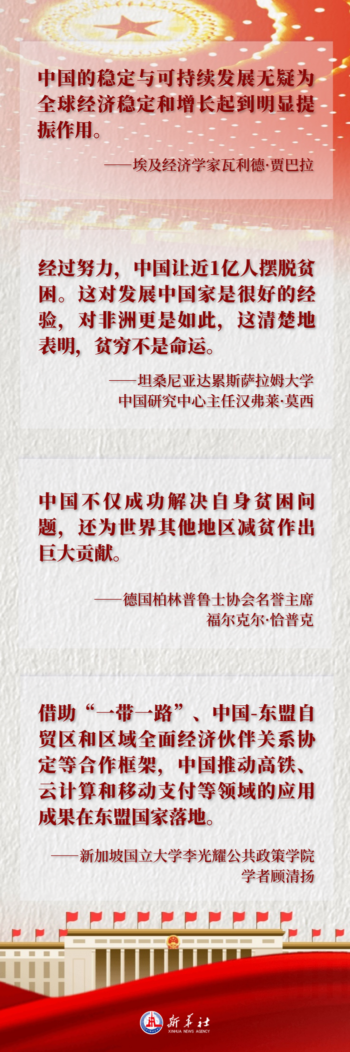 “中国经济成功,得益于巨大体量和巨大活力”“中国科技成果的广泛应用也为以东南亚地区为代表的周边区域提供发展动能”“中国推动高质量发展对世界经济产生深远影响”“中国对全球化的推动有利于实现世界更具包容性的发展”……