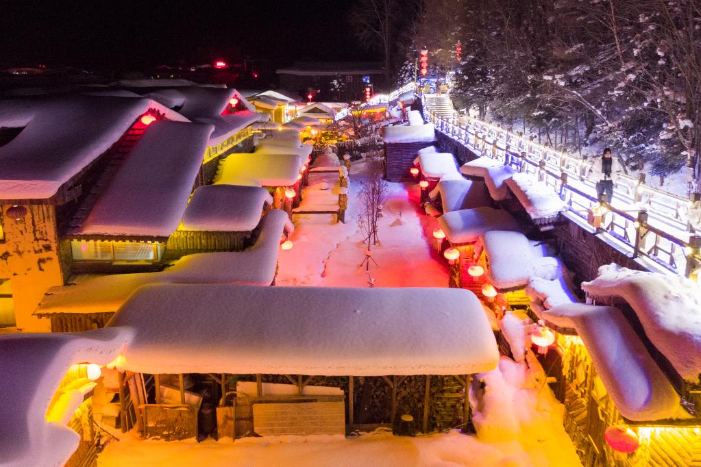 2022年12月14日拍摄的雪乡景区夜景(无人机照片)。新华社记者谢剑飞摄