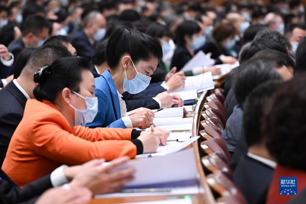 3月7日,全国政协十四届一次会议在北京人民大会堂举行第二次全体会议。这是委员们在认真听会。