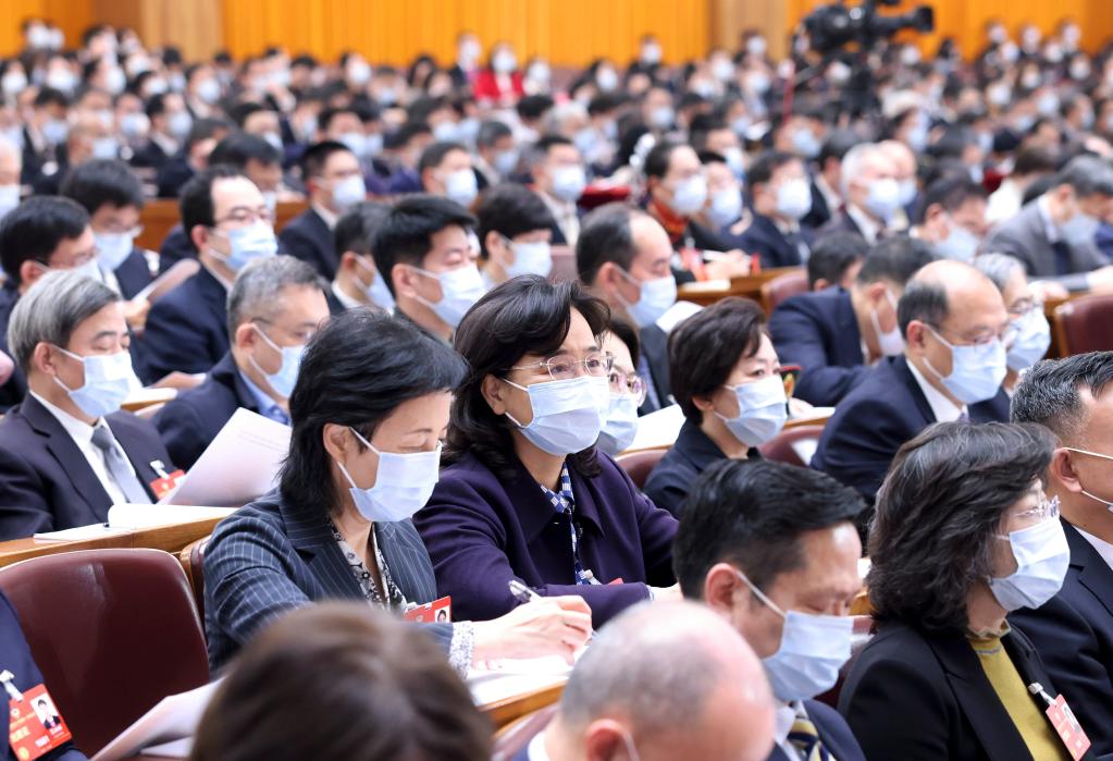 3月7日,全国政协十四届一次会议在北京人民大会堂举行第二次全体会议。这是委员们在认真听会。