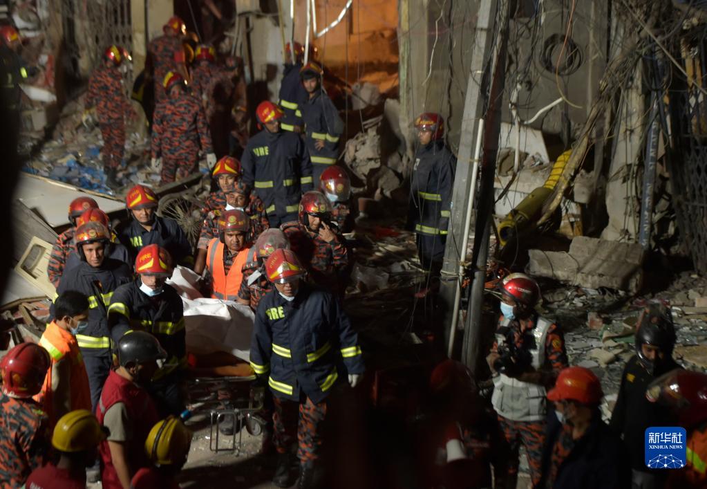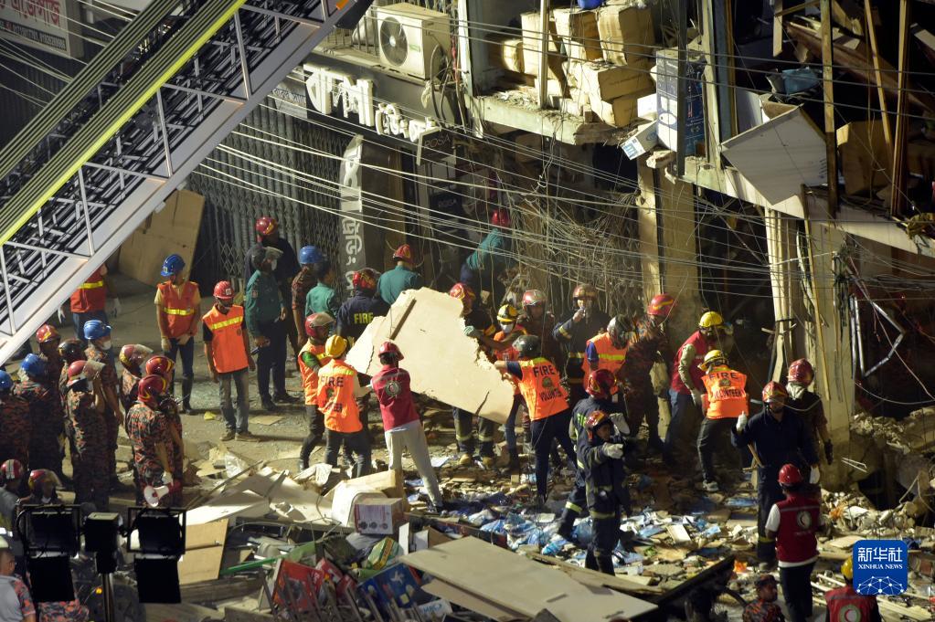 3月7日,在孟加拉国首都达卡,救援人员在爆炸现场工作。新华社发