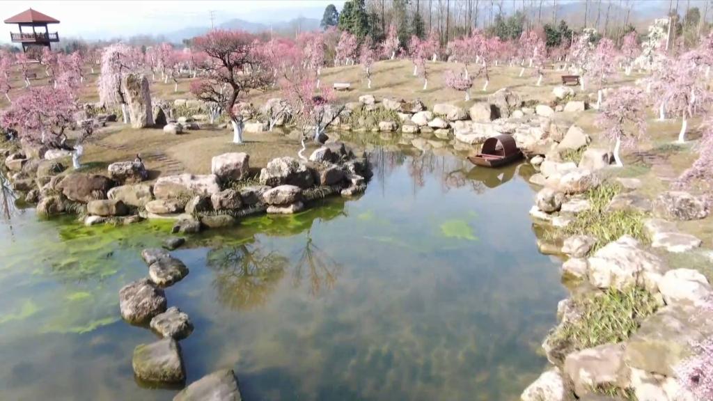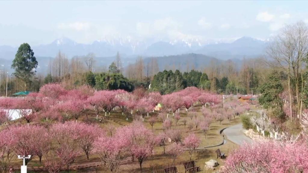 气温回暖,万物回春,近日四川都江堰青城山 “问花村”景区内鲜花大面积开放,吸引游人前往踏青赏花。