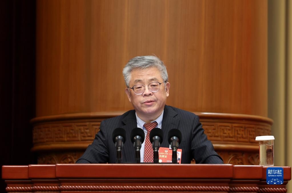 3月9日,全国政协十四届一次会议举行视频会议,委员作大会发言。这是谷树忠委员在主会场作大会发言。新华社记者 丁海涛 摄
