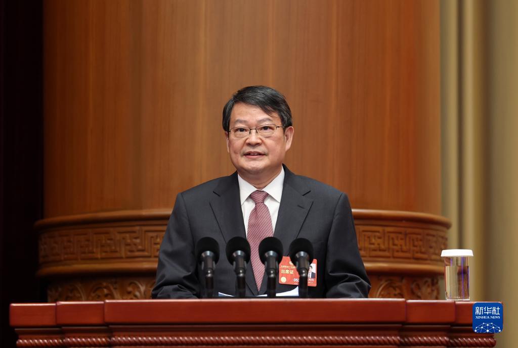 3月9日,全国政协十四届一次会议举行视频会议,委员作大会发言。这是在主会场,高鸿钧委员代表无党派人士界作大会发言。新华社记者 丁海涛 摄
