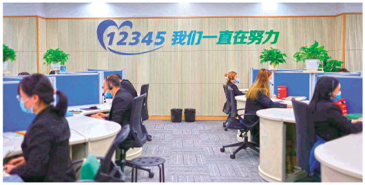 在12345热线接听中心,每天近200人在岗,7×24小时在线,日均2万余通电话接入。