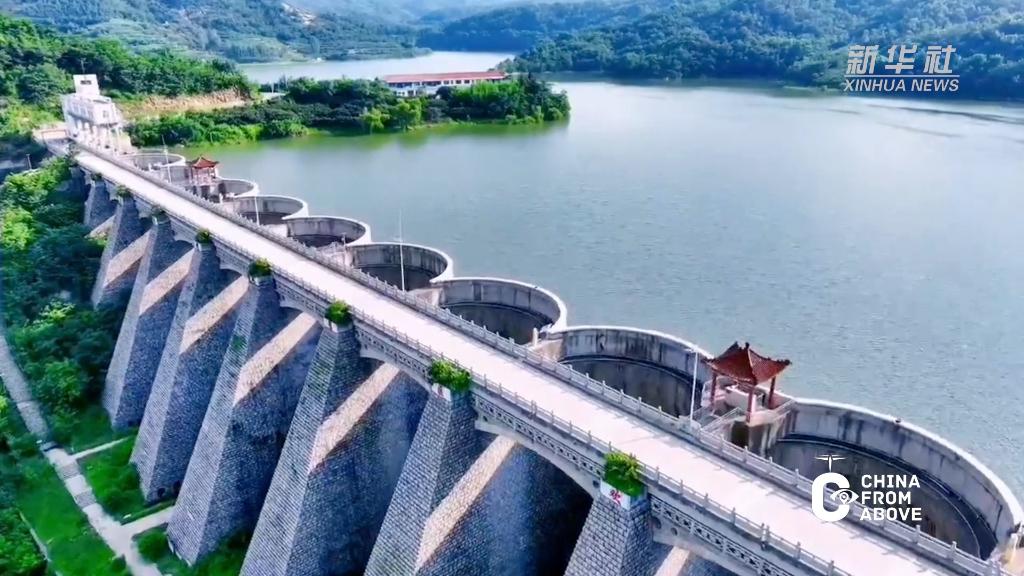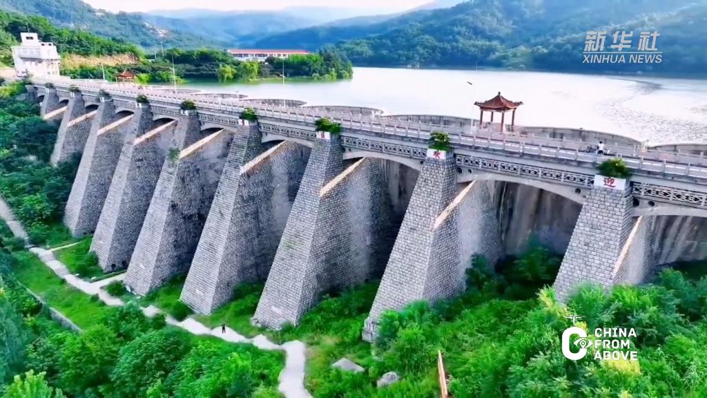 淌水崖水库位于山东省临朐县境内,水库大坝屹立在近20米高的整体天然花岗岩河床之上,全长204米、最高处39.34米,是一座以防洪、灌溉为主,兼顾发电和水产养殖的综合性水利工程枢纽。从高空俯瞰大坝,宛若一条巨龙横空出世,雄伟壮观。