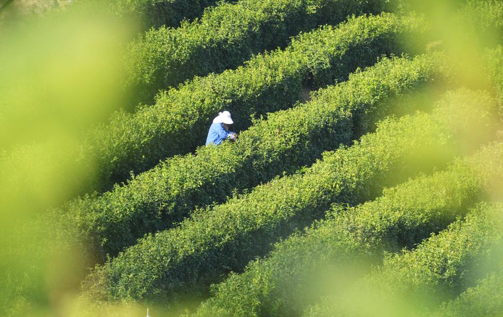 2022年4月,安徽省安庆市岳西县生态环境导向的开发项目入选第二批EOD模式试点项目名单。图为2022年4月9日,安徽省安庆市岳西县响肠镇千佛塔村村民在采茶。新华社发(吴均奇 摄)