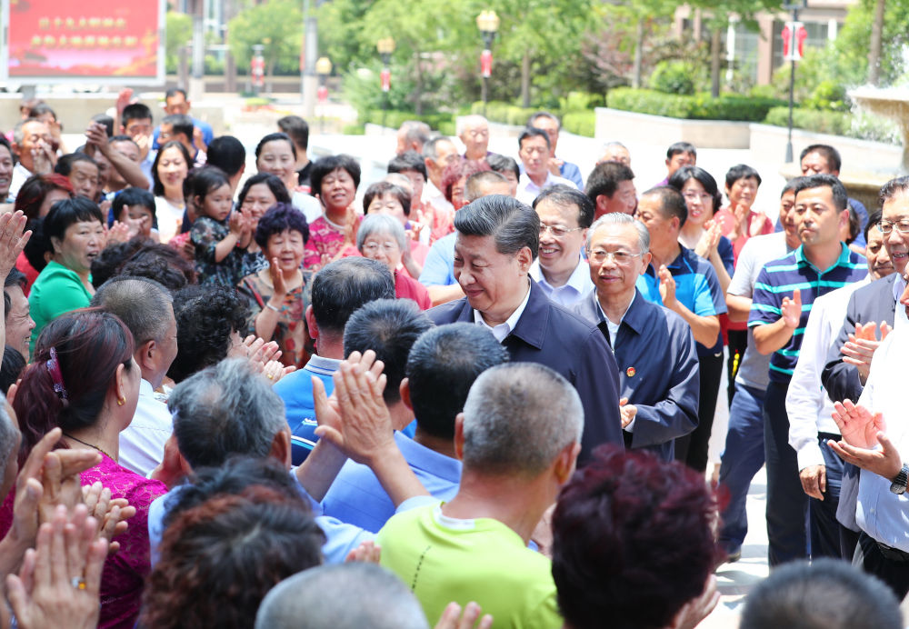 ↑2018年6月12日,习近平在山东省青岛市李沧区世园街道上流佳苑社区同居民亲切握手。