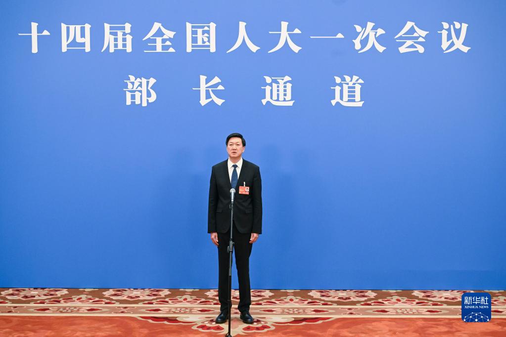 3月12日,第十四届全国人民代表大会第一次会议举行第三场“部长通道”采访活动。这是国家体育总局局长高志丹接受媒体采访。