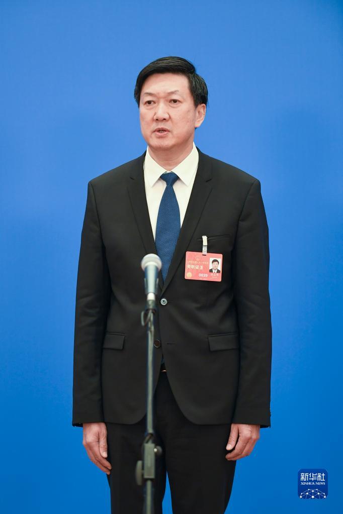 3月12日,第十四届全国人民代表大会第一次会议举行第三场“部长通道”采访活动。这是国家体育总局局长高志丹接受媒体采访。