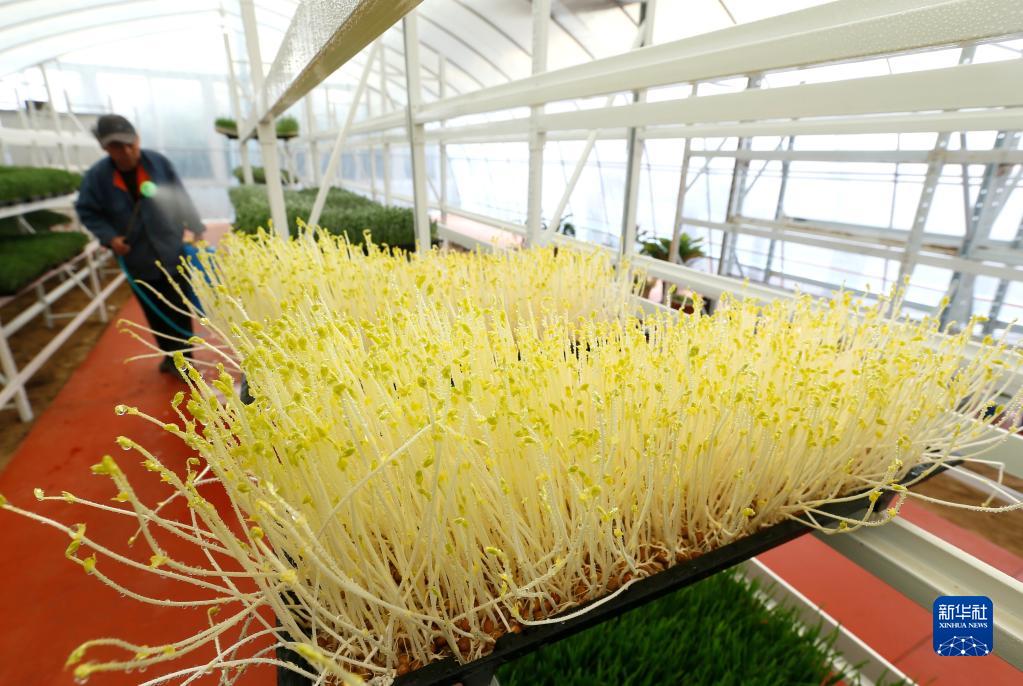 3月16日,在山东省青岛市即墨区北安街道天郁芬芳农场,农民在管理芽苗菜。