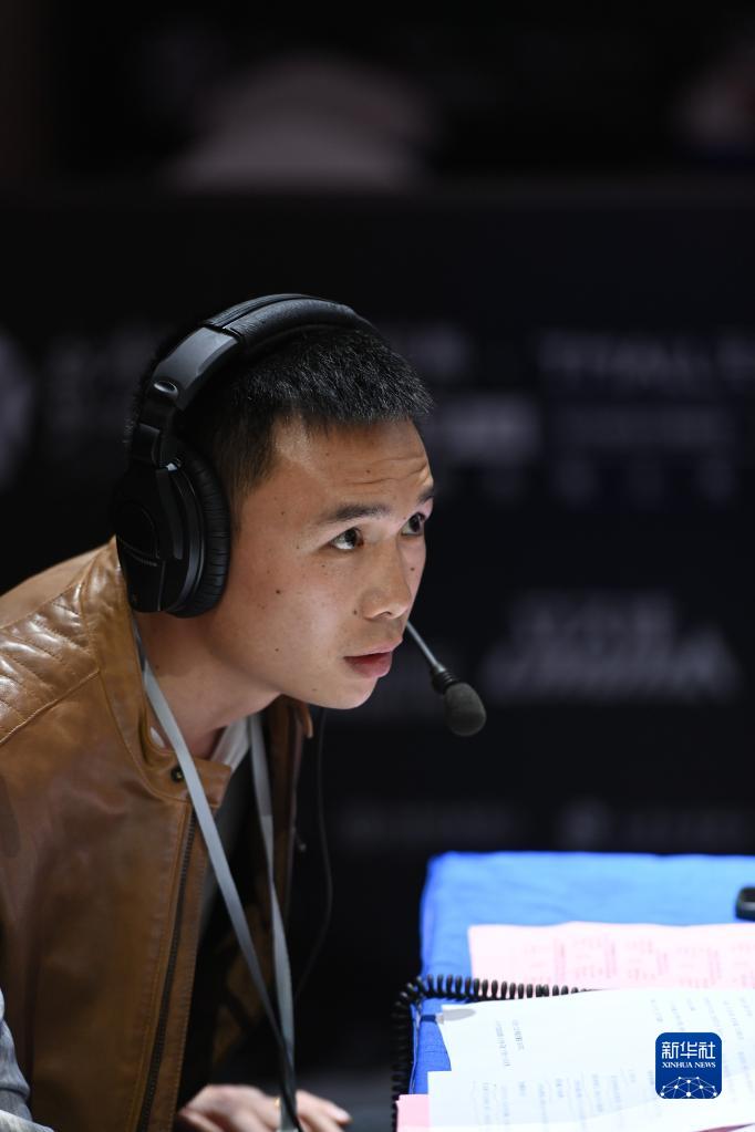 3月16日,前WBA羽量级拳王、中国拳手徐灿在场边解说。新华社记者 侯昭康 摄