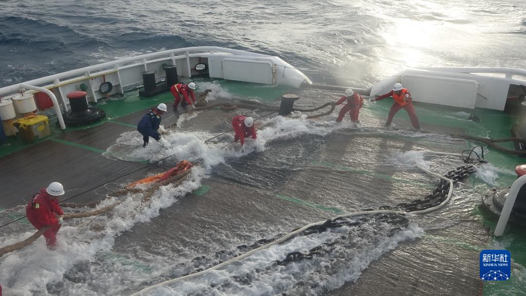 历经10日的海上拖带,“南海救115”船成功将受困货船拖救至广东珠江口水域(3月13日摄)。新华社发(交通运输部南海救助局供图)