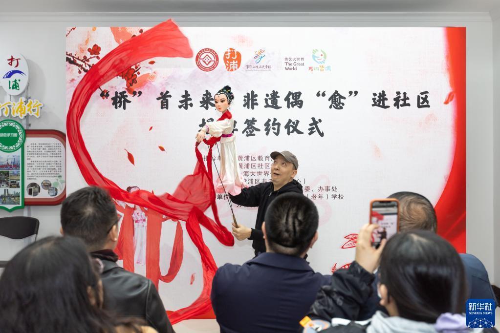 当日,上海市黄浦区打浦桥街道开展“‘桥’首未来·非遗偶‘愈’”活动,推出非遗海派木偶课,让更多人了解非遗技艺,感受非遗魅力。