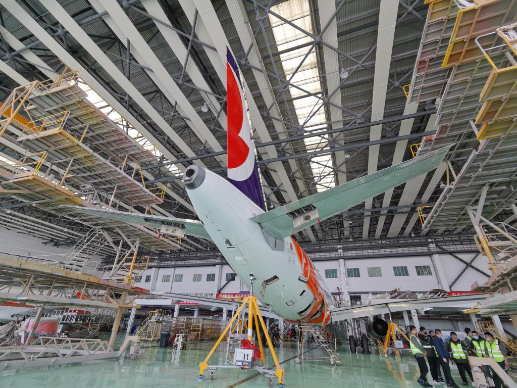 天津海特飞机工程有限公司机库一景。新华社记者 刘惟真 摄