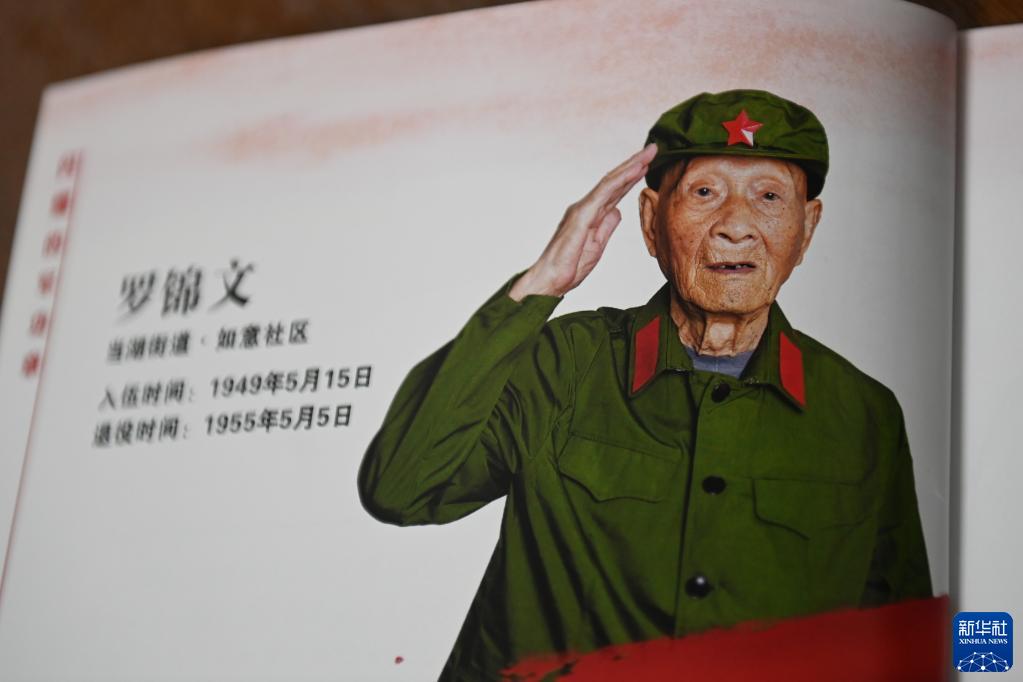 在平湖市退役军人事务局2020年制作致敬抗美援朝英雄的图册中,有罗锦文老人身穿军装的一张照片(3月2日摄)。新华社记者 黄宗治 摄