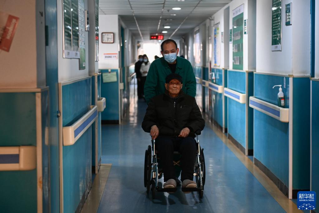 罗锦文老人在浙江省平湖市一家老年康复护理院疗养(3月2日摄)。新华社记者 黄宗治 摄