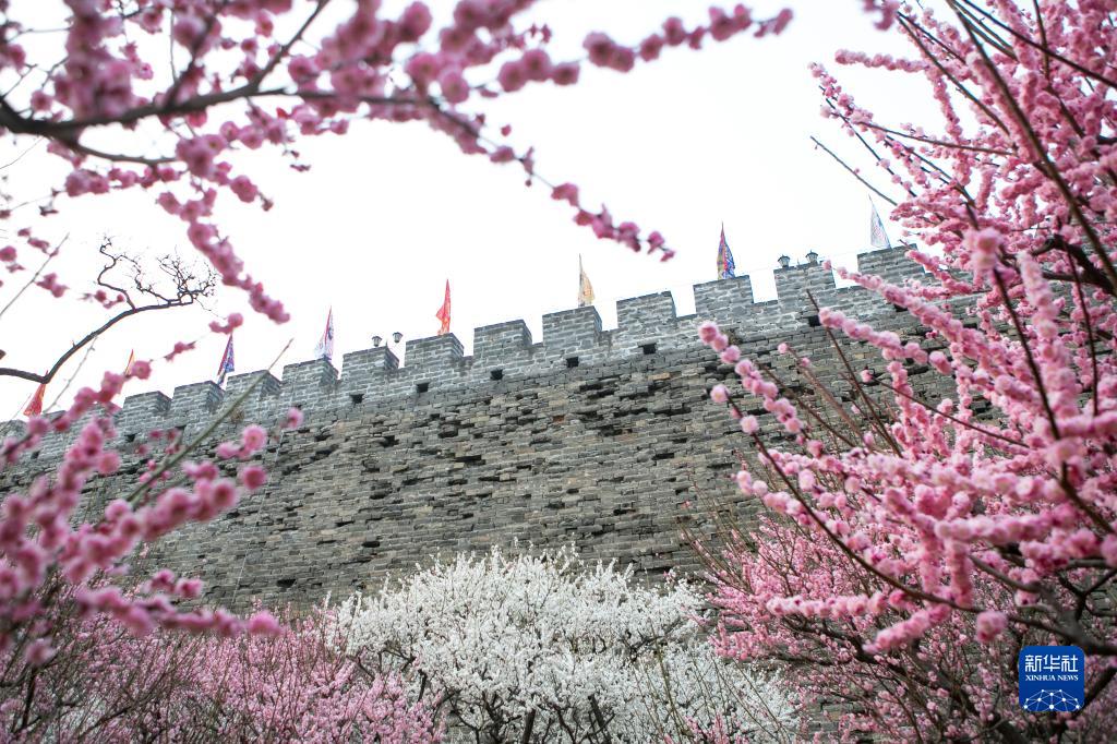 近日,北京明城墙遗址公园内春花绽放,引来大批游客踏青赏春。