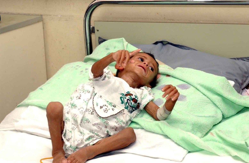 2004年9月18日,一名患白血病的伊拉克儿童躺在巴格达儿童医院。由于美军在战争中使用贫铀弹,伊拉克儿童先天性缺陷率及癌症发病率上升。新华社发(阿里摄)