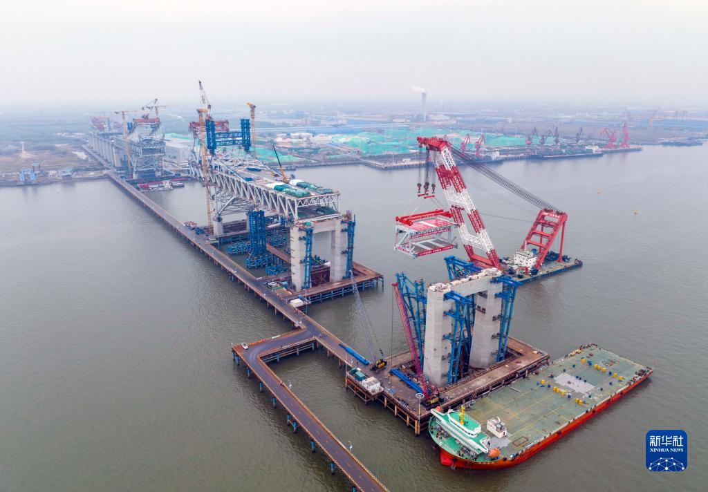 常泰长江大桥主航道桥钢桁梁架设全面展开