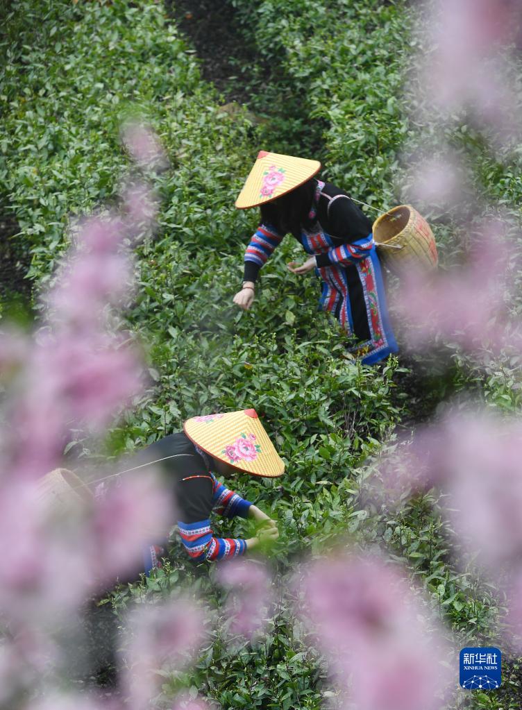 3月20日,在湖南衡阳常宁市塔山瑶族乡,茶农在茶园采茶。