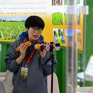 3月18日,一名主播在展会现场进行直播。新华社记者 孙凡越 摄