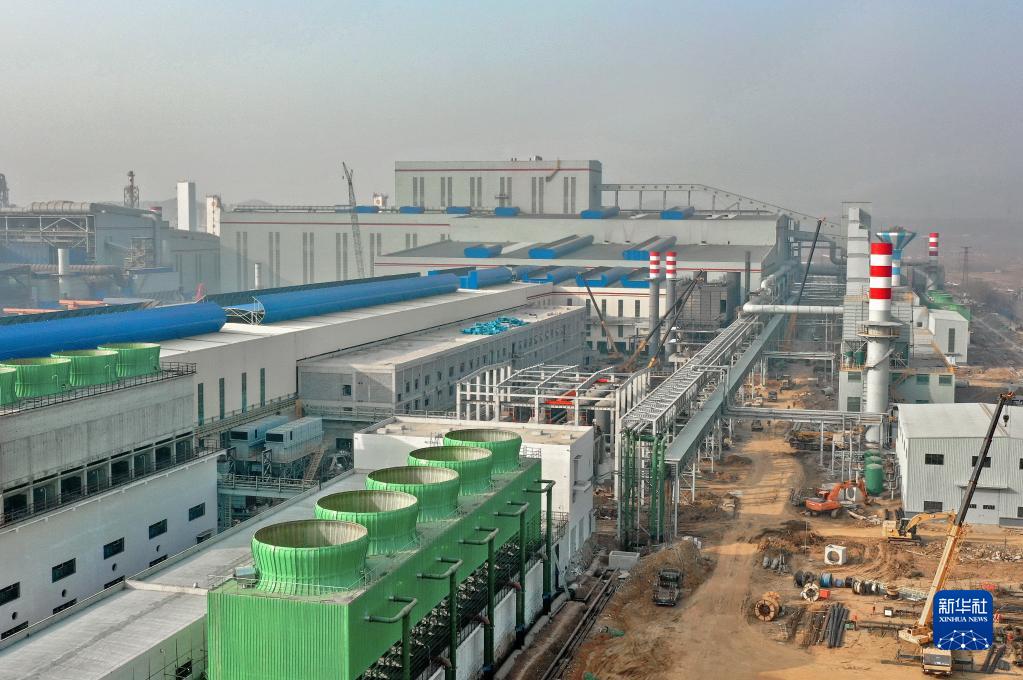 3月20日,工人在项目建设工地施工(无人机照片)。