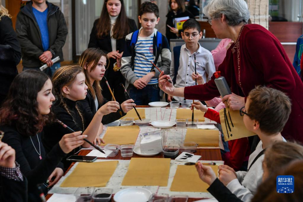 记者采访当天,恰逢莫斯科国际关系学院举办“中国魅力”主题活动。活动现场人潮涌动,热闹非凡。来自莫斯科多所中小学的百余名师生品中国茶、学习书法、体验剪纸艺术,莫斯科国际关系学院的学生在现场参与交流和讨论。