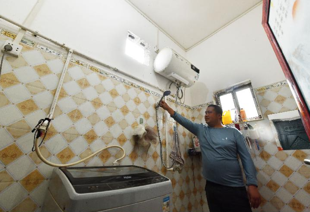 在弄勇村弄朝屯,村民蓝财宏家里安装了热水器和洗衣机。