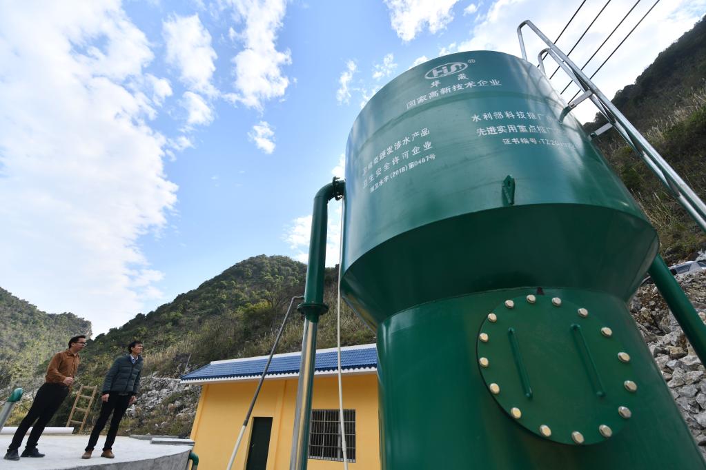 在八好村,驻村干部在查看抗旱应急供水工程设备运行情况(2021年2月7日摄)。
