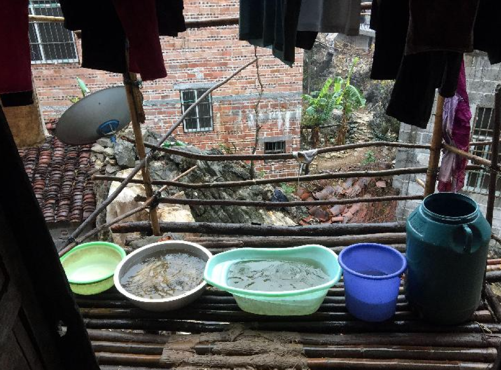 因为地处深度贫困山区,交通不便,蓄水设施的材料运输费用甚至比材料成本还要高,当时很多家庭都无力修建家庭水柜。长期以来,瑶山人用大大小小的水桶水缸、屋顶砌出的小围墙来承接雨水,有的甚至收集路面水,储备起来供应日常使用。干旱时,家家户户相互接济,共渡难关。
