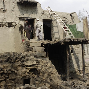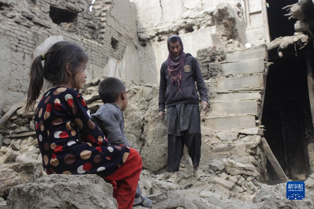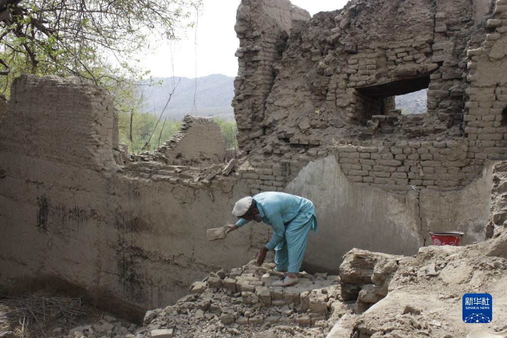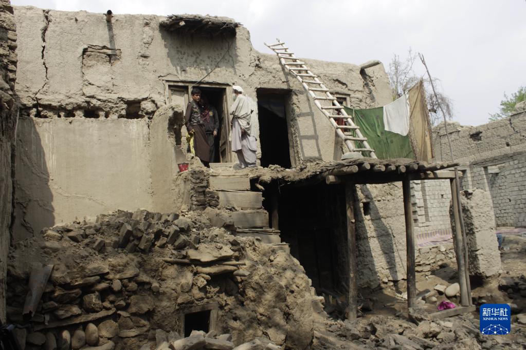 3月22日,当地居民在阿富汗拉格曼省查看在地震中受损的房屋。新华社发(艾马尔·查希尔摄)