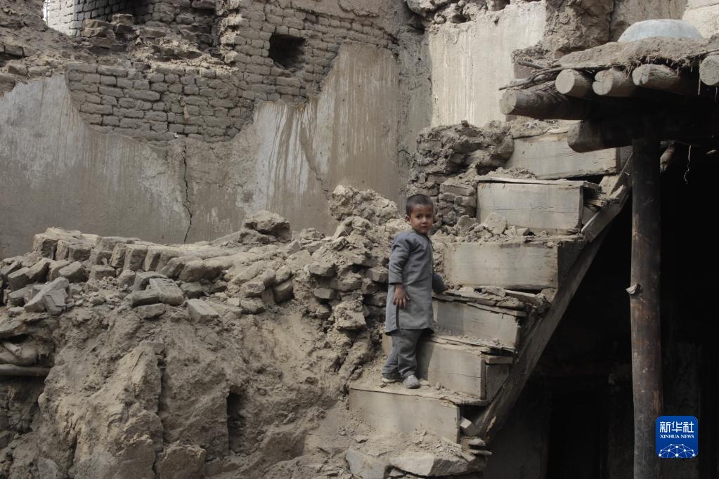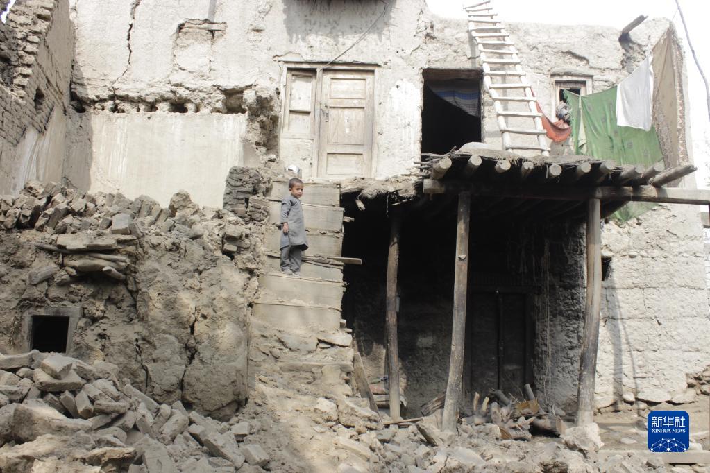 3月22日,在阿富汗拉格曼省,一名儿童站在受损的房屋上。新华社发(艾马尔·查希尔摄)