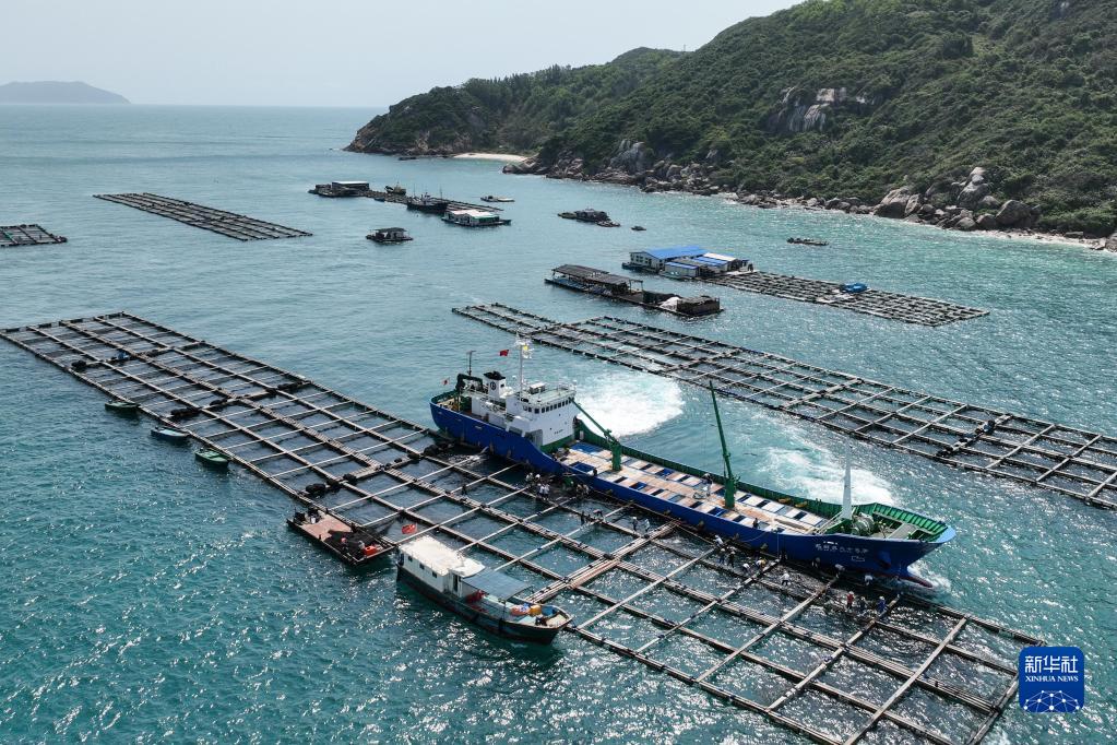 3月24日,日本籍渔船在万宁大洲岛水域装运章雄鱼苗 (无人机照片) 。