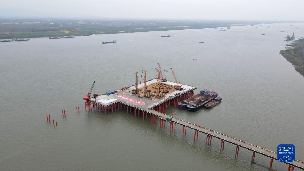这是中铁大桥局池州长江公铁大桥首个主墩开钻现场(3月25日摄,无人机照片)。