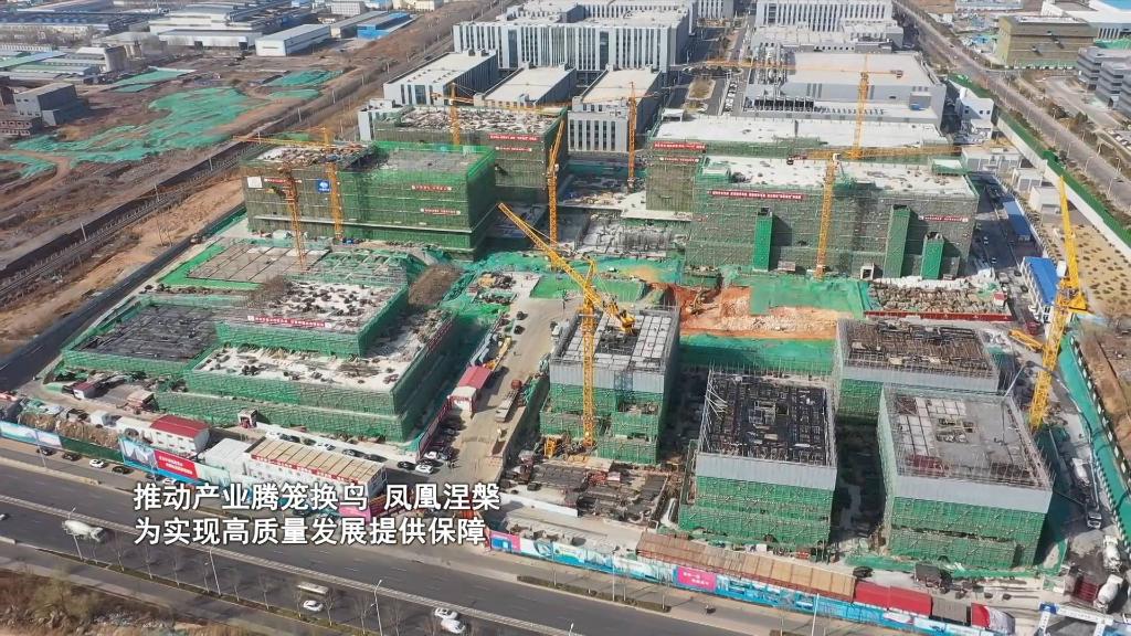 在淄博市张店区电子信息科创园项目建设现场,塔吊林立,机器轰鸣,一座座建筑拔地而起。两年前,这里还是一片废旧厂房。