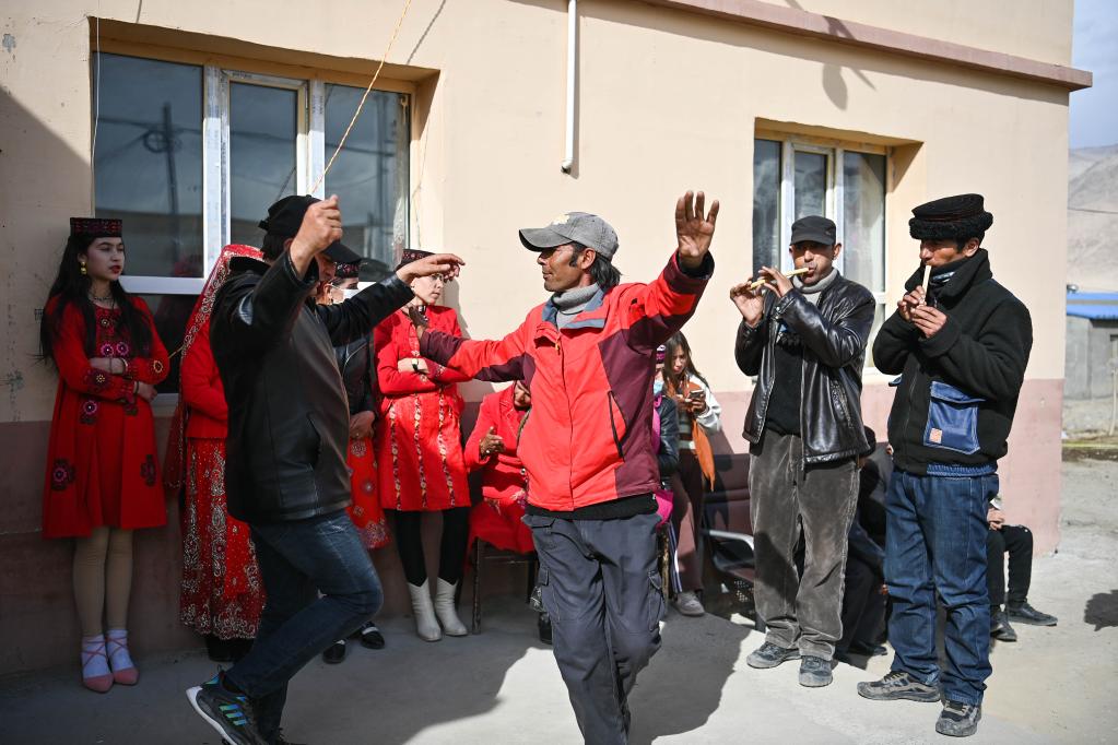 这场塔吉克族传统婚礼持续了三天,首日亲友贺喜,次日迎亲庆贺,第三日揭开新娘面纱、大宴宾客,每天都举行各种庆祝活动。作为国家级非物质文化遗产,塔吉克族婚俗是塔县的文旅名片之一。婚礼现场还有不少慕名而来的游客,大家一起分享喜悦幸福。