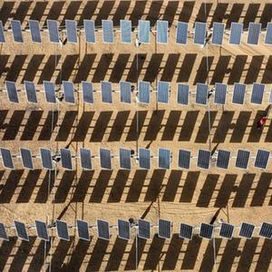 宁夏银川近日迎来大风沙尘天气。沙尘过后,为确保沙漠光伏发电项目安全、稳定运行,国网银川供电公司联合辖区光伏电站,开展排查线路及变压器安全隐患、清洁光伏面板等工作,对沙漠光伏项目进行春季“体检”。