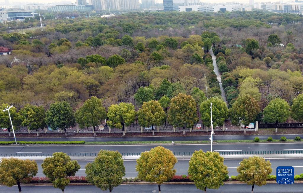 松江新城绿环建设区域内绿树成荫(3月21日摄,无人机照片)。