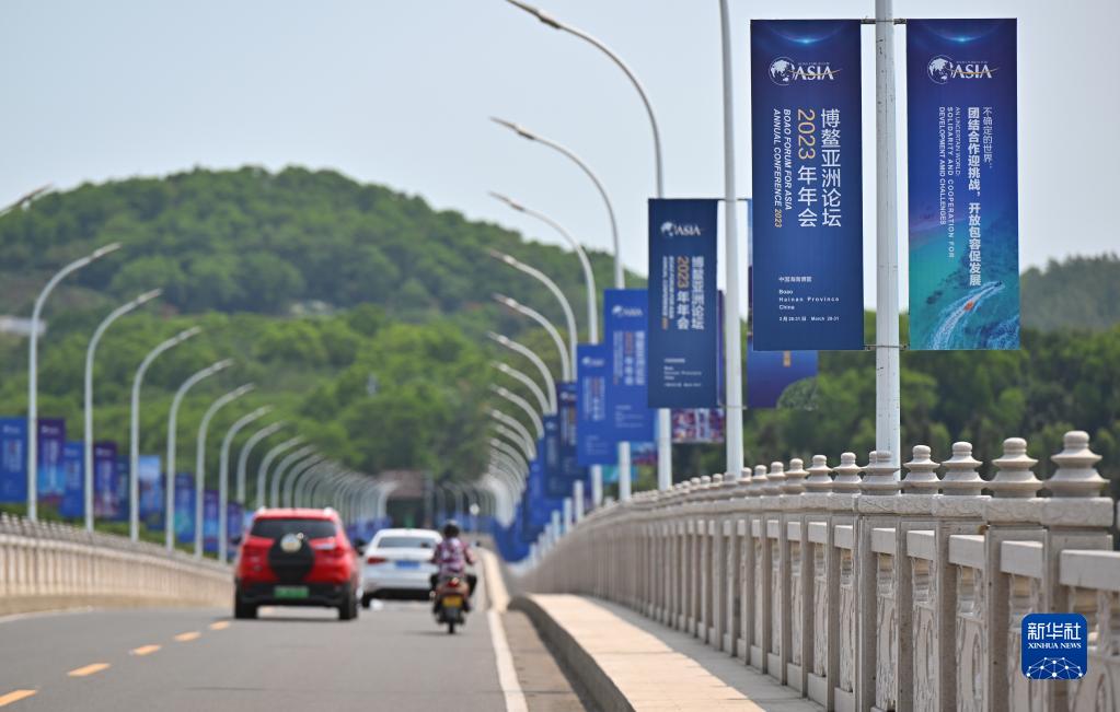 这是博鳌大乐大桥上的博鳌亚洲论坛2023年年会主题宣传牌(3月25日摄)。