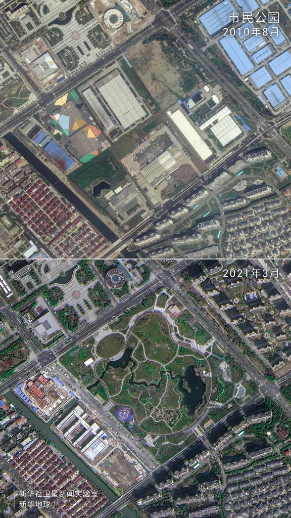 这是3月14日拍摄的太仓市天镜湖公园(无人机照片)。