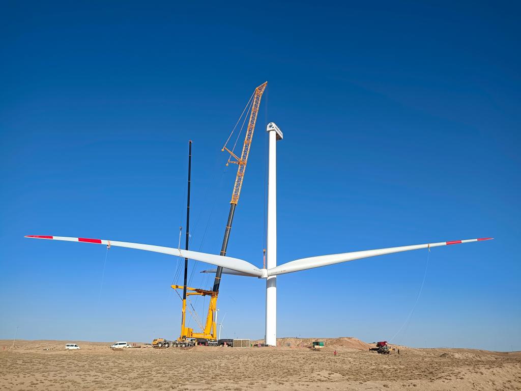 徐工XCA2600轮式起重机在甘肃省张掖市甘州区平山湖30万千瓦风电场吊装风机。