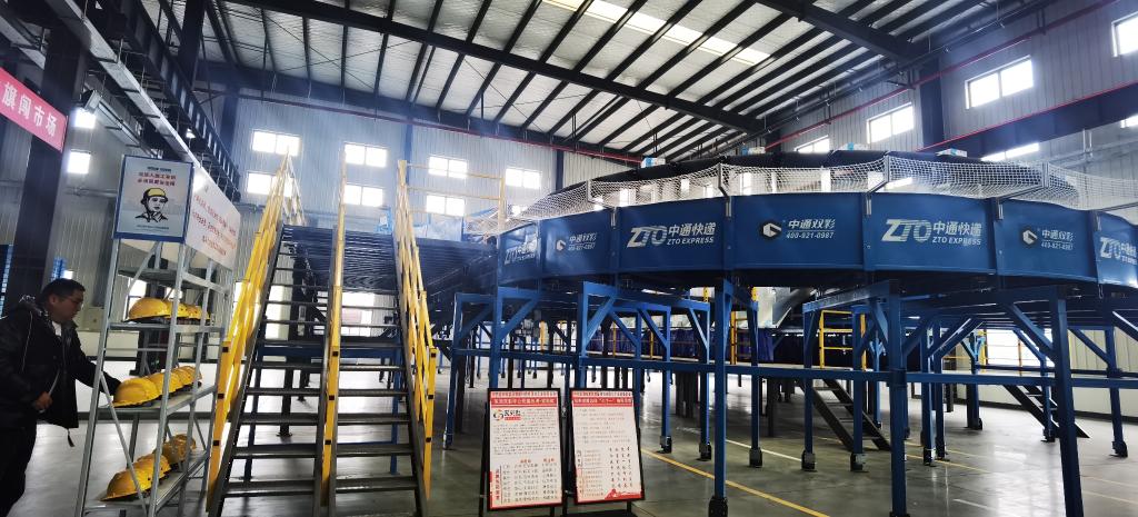芜湖市双彩智能科技有限公司的智慧车间内,智能快递分拣装备正在高效工作。