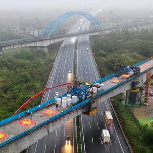 3月29日晚,随着最后一方混凝土注入,中铁十局承建的广(广州)湛(湛江)铁路长兴村特大桥跨G15沈海高速连续梁顺利合龙,这也是全线首座跨高速连续梁合龙。