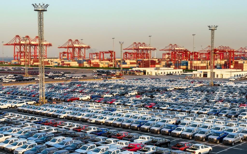 3月13日,江苏太仓港海通汽车码头堆场(无人机照片)。新华社记者 李博 摄