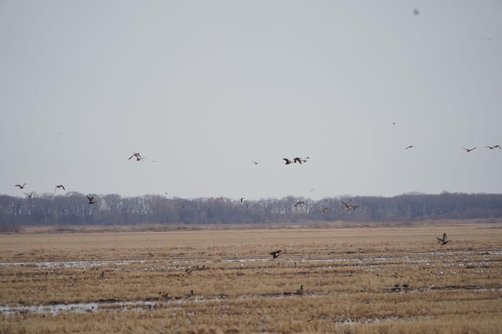 新华社哈尔滨4月1日电(记者戴锦镕、侯鸣)大雁、野鸭、东方白鹳……在黑龙江省密山市兴凯湖国家级自然保护区,数十种鸟类或盘旋于湿地上空,或在水面畅游。近日,中俄界湖兴凯湖进入候鸟迁徙高峰,鸟类日监测量超5万只。