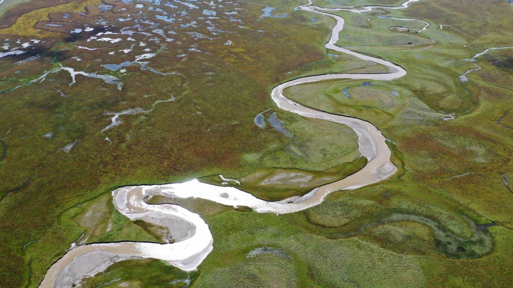 这是2022年9月21日拍摄的玛曲县阿万仓湿地(无人机照片)。甘肃省甘南藏族自治州玛曲县是黄河上游重要的水源涵养区和补给区。新华社记者 陈斌 摄