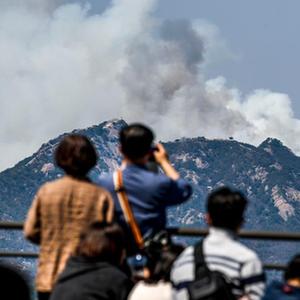 据韩联社报道,消防部门已投入9架直升机、580名消防人员参与灭火。截至当天下午,灭火作业仍在进行中。消防部门紧急限制游客进山,还疏散了附近住宅区的居民。