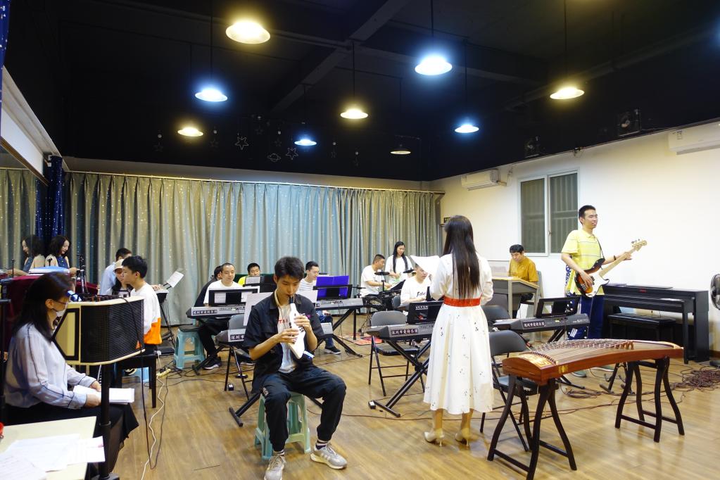 爱特乐团在南山阳光文体中心内的教室进行合奏。新华社记者苟洪景 摄